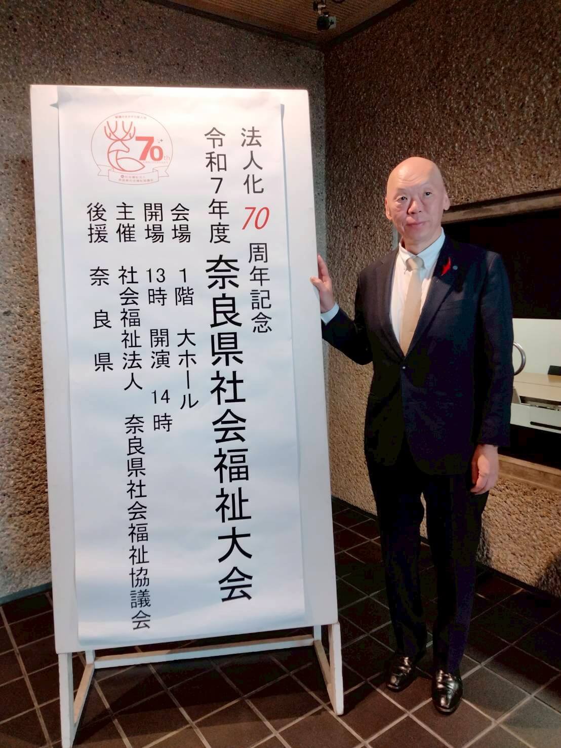 奈良県社会福祉協議会70周年記念大会 2025年12月10日 寄付・寄贈活動 12月10日(水)に長年の車椅子寄贈等の支援に対して奈良県社会福祉協議会より70周年記念大会に招待され感謝状を受賞しました。