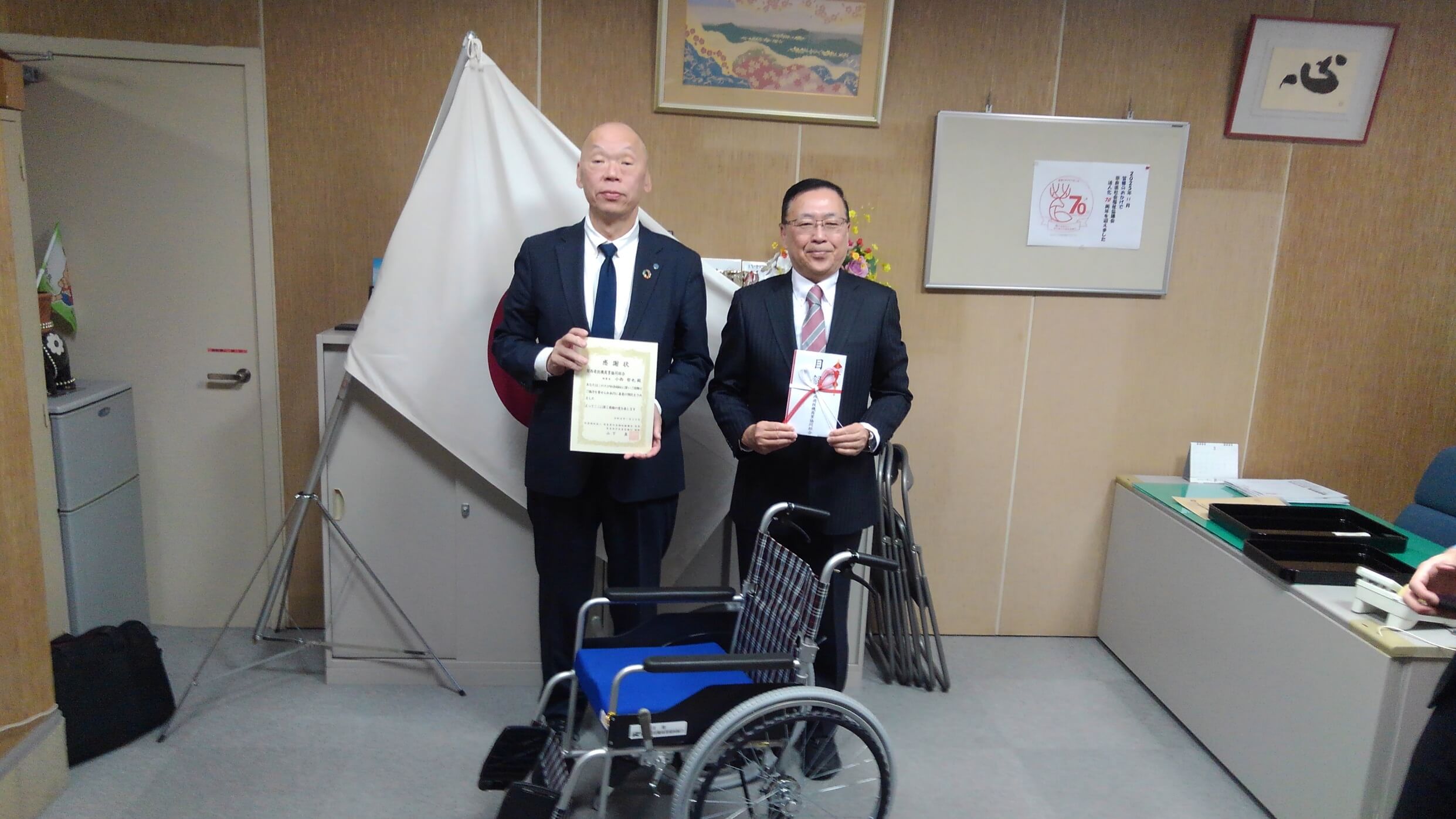 車椅子寄贈による感謝状贈呈式が執り行われました